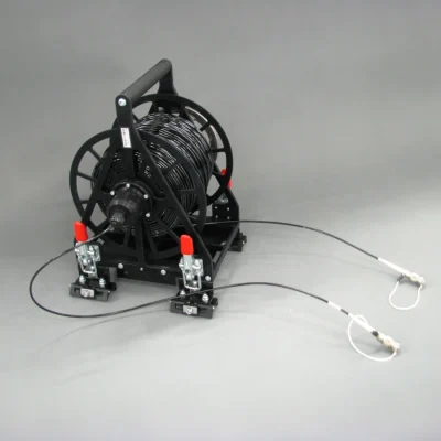 - Cable largo de fibra óptica (enrollado sobre el carrete)